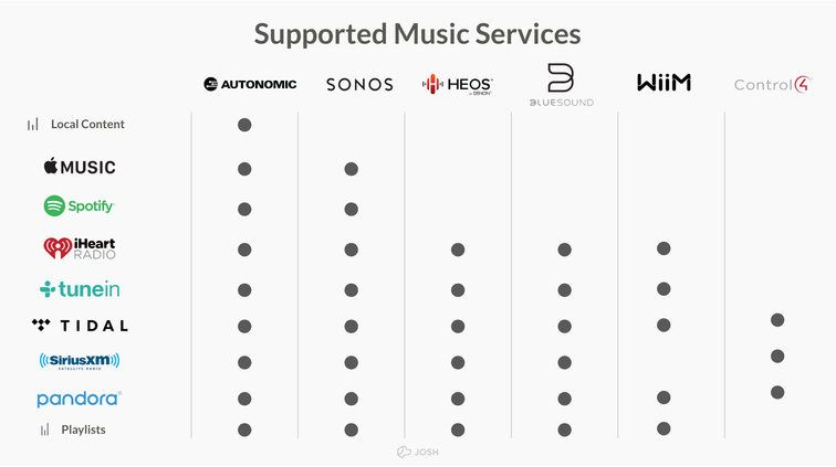 Working through its audio partners, Josh supports content search across the most popular music streaming services:
